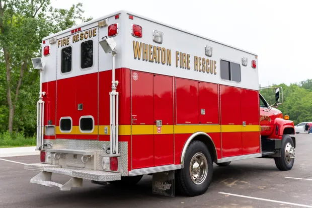 Heavy-duty squad truck with extensive equipment storage.